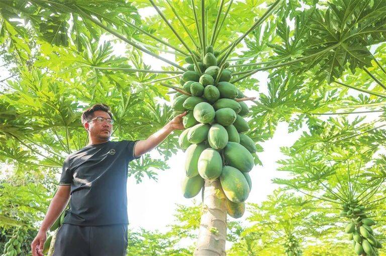 “今年这个品种,能增产15%。”他给记者算了一笔经济账,“今年木瓜长势好、产量高,单株木瓜树可产200—300斤木瓜,亩产超1万斤。按照收购价2—3元一斤计算,除去成本,一亩能挣一万多元。”