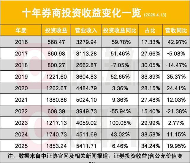 过去十年,证券业最显著的结构性变革,莫过于收入结构的根本性重构,自营业务从“配角”逆袭为“主角”,成为行业营收的压舱石。