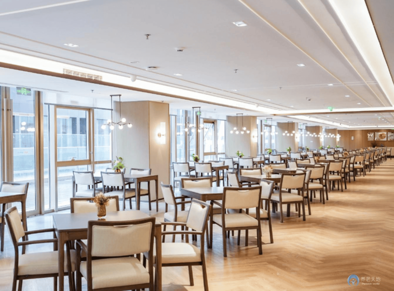 在空间规划上,鹏瑞利康护开创春城梯度设计理念。项目由国际设计团队与高原建筑专家共同打造,建筑布局顺应地形,减少风阻;立面采用大面宽、浅进深设计,最大化自然采光与通风;室内空间强调高原-平原过渡区概念,设置海拔适应缓冲空间;公共区域设计多层次观景平台,连接滇池景观与社区生活。
