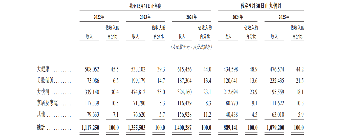 按产品类别划分,美妆个护正成为极易科技的重要增长引擎,“在往绩记录期间内,我们的收入主要来源于销售大健康及美妆个护产品。”