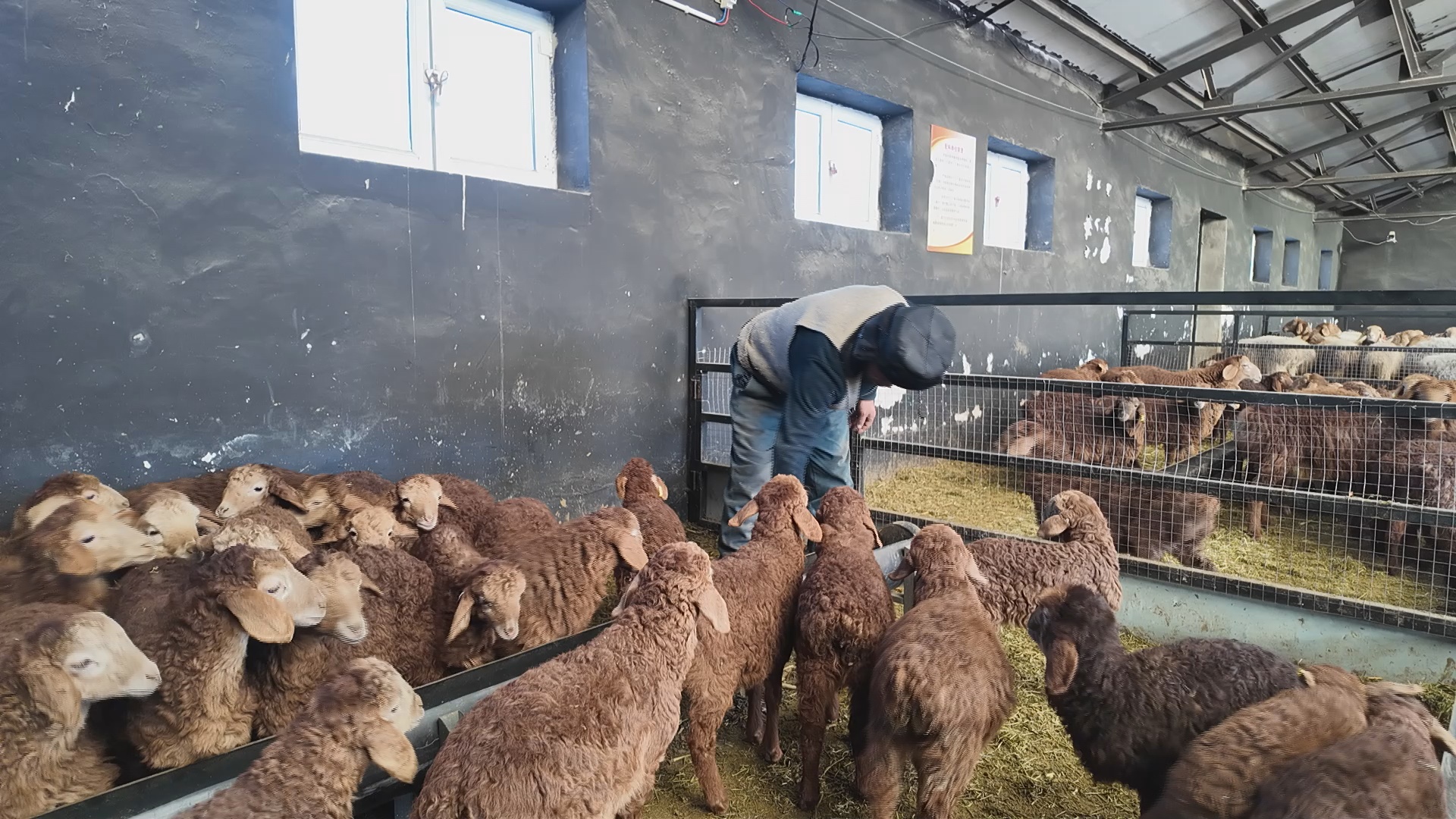 尼勒克县喀拉苏乡大喀拉苏村村委会主任居玛别克·巴扎尔别克说:“我们2025年引进了130只皮山红羊,经过一年的养殖,已经适应这边的气候环境了。皮山红羊是多胎羊,特点是一年生两次,一胎生两只到三只,效益很好。”